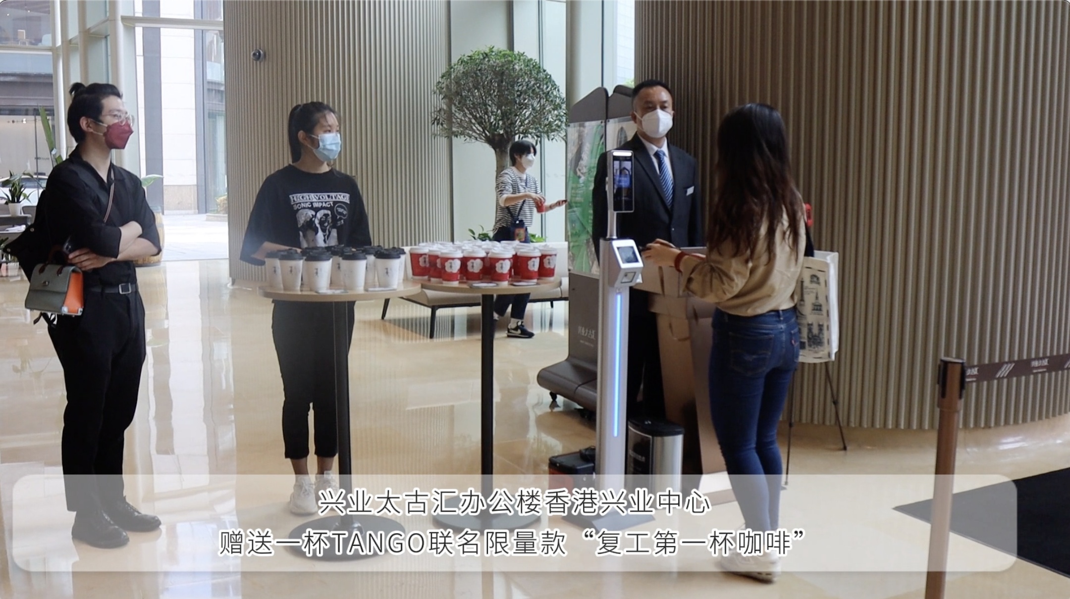 而在南京西路的另一头,走进兴业太古汇场内两幢甲级办公楼香港兴业中心的白领,则以充满仪式感的咖啡香气解锁充满活力的第一天。“请通行,绿码、36.5度,核酸48小时阴性。”白领方女士通过闸机时还领取了一杯TANGO联名限量款“复工第一杯咖啡”,以及一张“防疫出入证”,凭该证当日可在场内快速出入,无需重复接受查验,“从来没有这么期待过上班,没想到还有惊喜,也很感动,今天这个早高峰可以用舒爽和温暖来形容了。”方女士说。