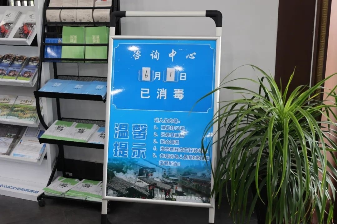 记者在枫泾古镇游客接待中心前看到,工作人员正在对游客蛇形通道的隔离栏进行粉刷工作。走进接待中心,游客则需要配合工作人员做好场所码、随申码、行程卡、核酸检测信息“四码”查验工作,经体温检测合格后方可入园。