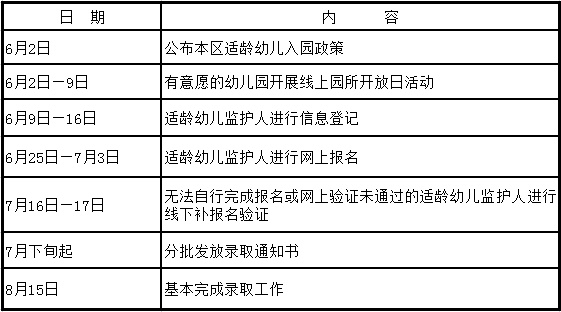 2022年6月2日,公布本区适龄幼儿入园政策。适龄幼儿入园工作主要分为信息登记、报名验证和录取通知三个阶段。