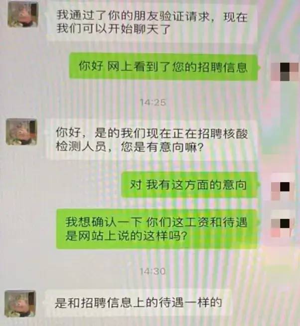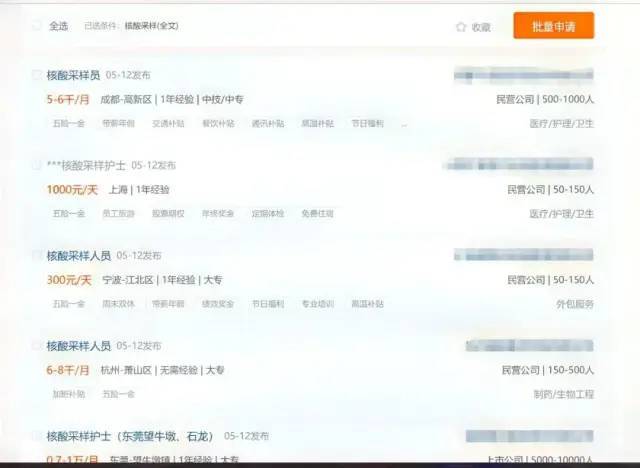 有这样一则招聘广告:“目前上海急需一批核酸检测信息录入员、采样人员,日薪300元、500元月结,工作七天休息七天,非上海本市人员公司可以开具免隔离通行证,无经验包培训、包吃、包住、包接送,岗位先到先得招满为止。”