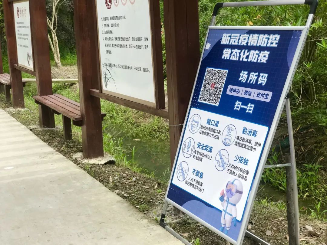 另外,林地内座椅、栏杆、废物箱及休憩设施等也都一一进行了消杀,林地出入口等处设置了防疫提示牌和场所码。市民须遵守防疫规定,规范佩戴口罩,自觉保持2米以上安全距离,禁止人群聚集活动。