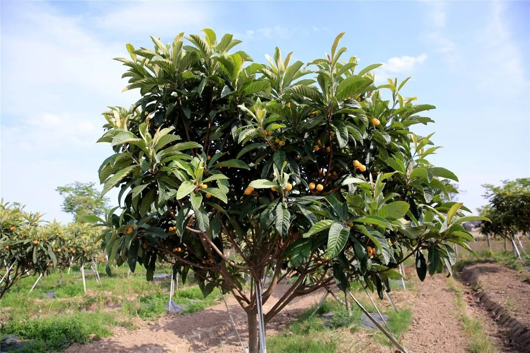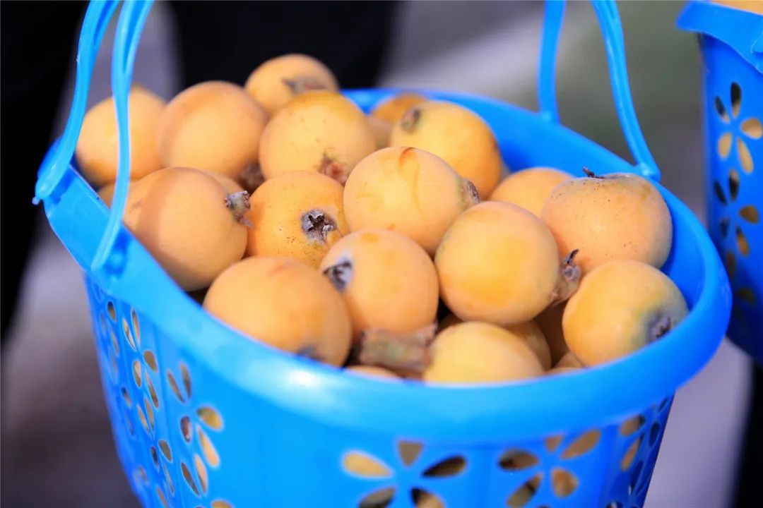 据介绍,这里的枇杷树已种植五年,今年是第二年挂果。预计总产量可达3000斤。前期由于光照、雨水、温度等条件都十分适宜,相较于往年,今年枇杷的口感更甜,品质更佳。
