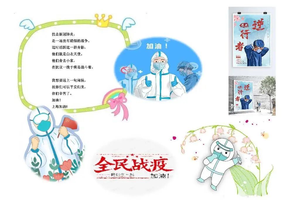 本届语文.艺术节也是我校市级课题《全员育人下“四季”综合德育项目化活动的实践研究》的一项子课题研究。活动过程融合了语文、道法、音乐、美术、信息技术等多种学科,以目标为导向开展综合学科项目化学习活动。体现了全体师生的素养与精神,更是以此向奋战在抗“疫”一线的勇士们表达最崇高的敬意与感激之情。