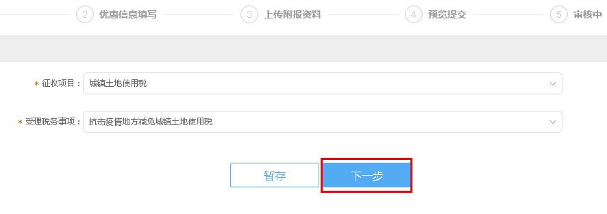 受理税务事项:选择“抗击疫情地方减免城镇土地使用税”