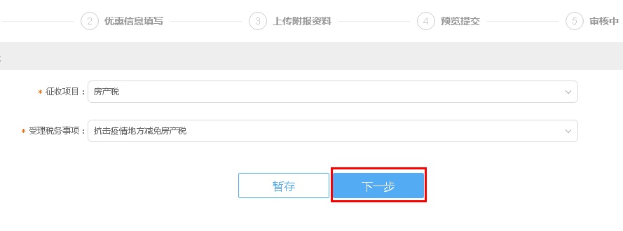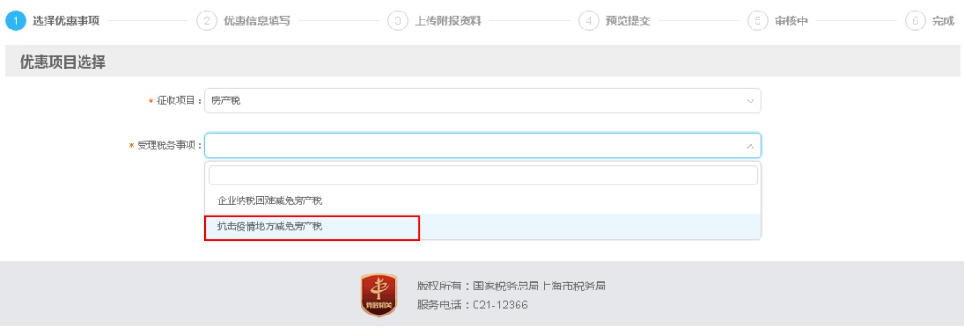 受理税务事项:选择“抗击疫情地方减免房产税”