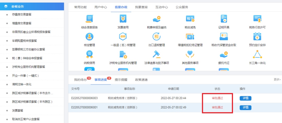 税务机关终审后,状态将显示“审批通过”。