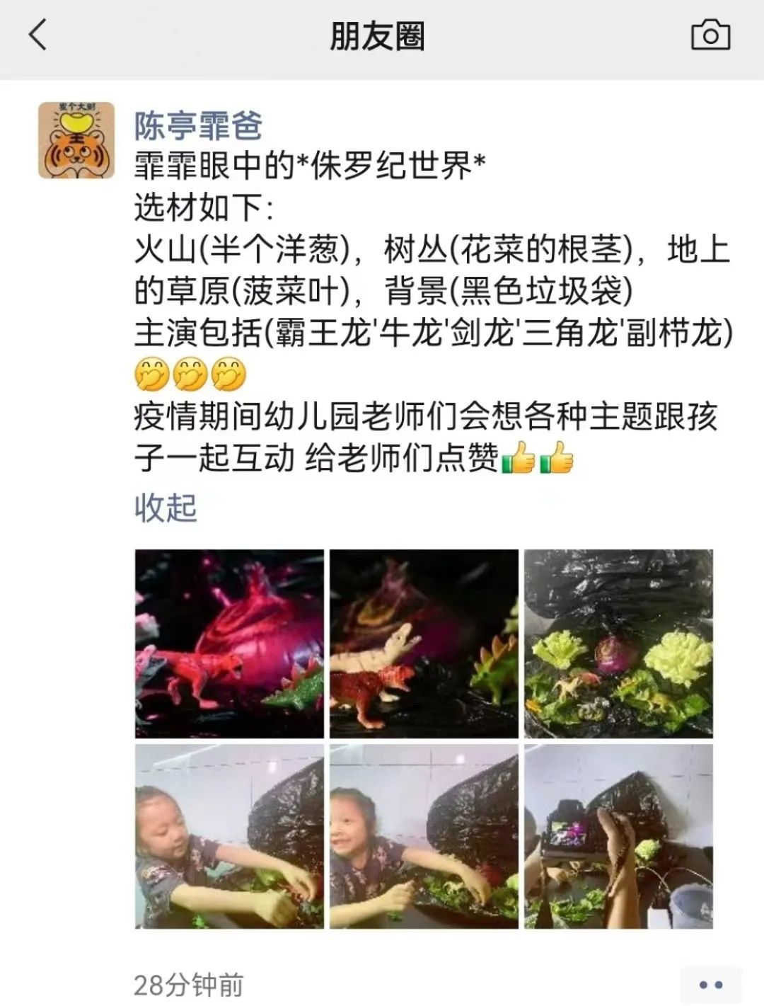 让刘易更为惊喜的是,本次创意节活动,家长们的参与度非常高,他们纷纷通过拍照、讲述、拍摄、发朋友圈等方式,记录幼儿的创意小故事,同时共同参与和体验蔬果创意拼搭的有趣,感受平凡的材料在创作中的意义和价值。