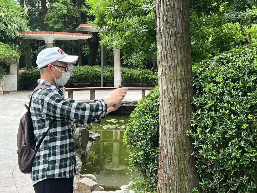 在准备开园期间,光启公园翻新了园内的草花,今年新种的八仙花目前已经到了盛花期,粉色花朵呈球状簇拥在一起,煞是好看。湖内,睡莲也已经开放,静静等待着游客前来观赏。许久未走进公园的游客,有的举着手机在给亲朋好友们直播,有的则惬意地依靠在公园的长椅上享受久违的被绿意环抱的感觉。