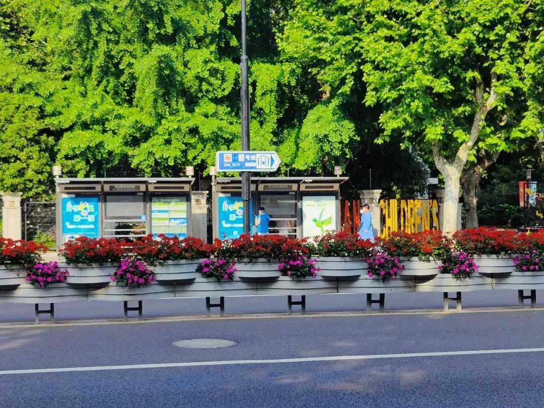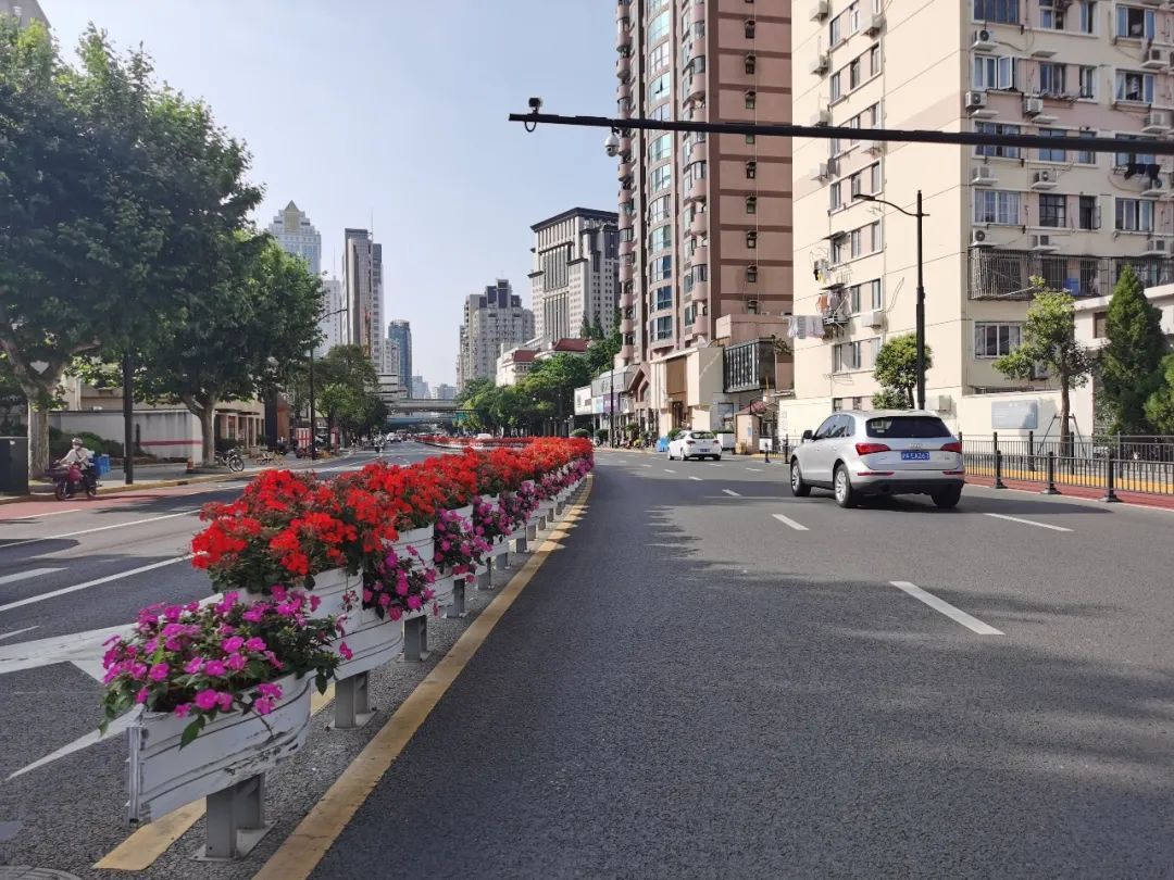 长宁路、愚园路交叉口这两处“景点”也换上了多彩多姿的花草,让大家眼前一亮。