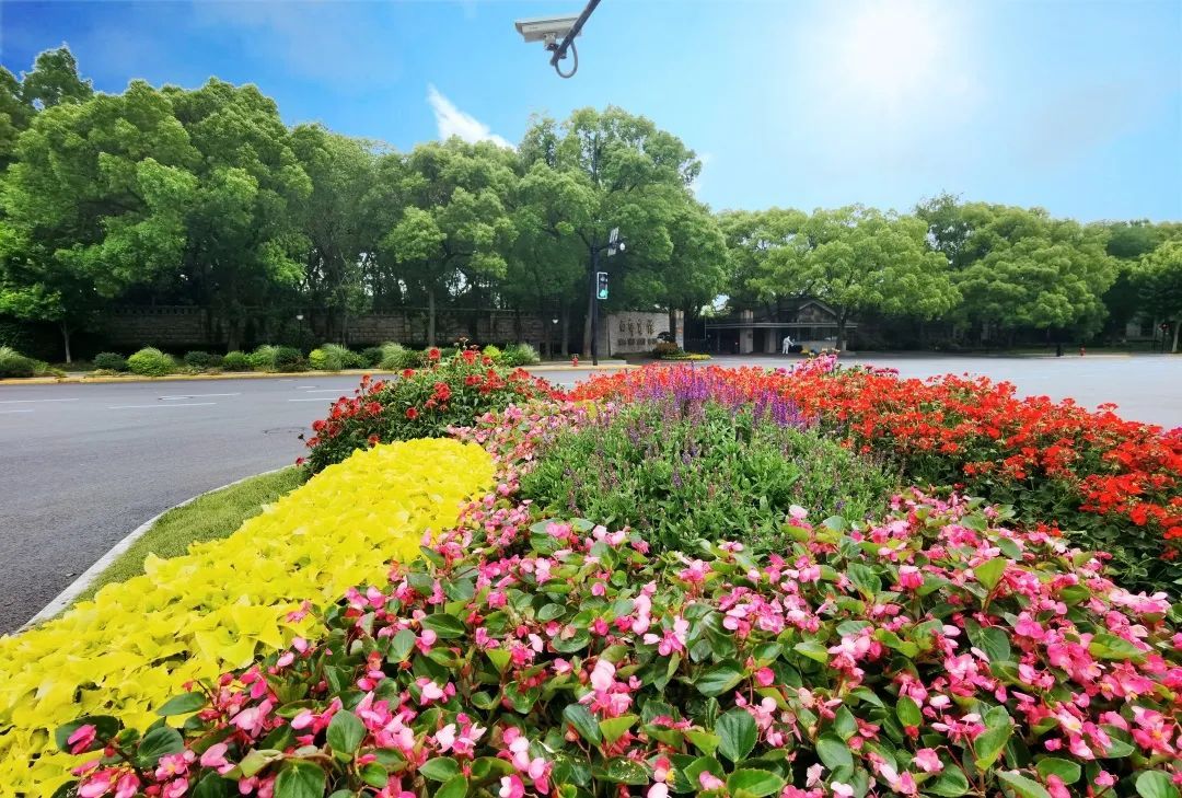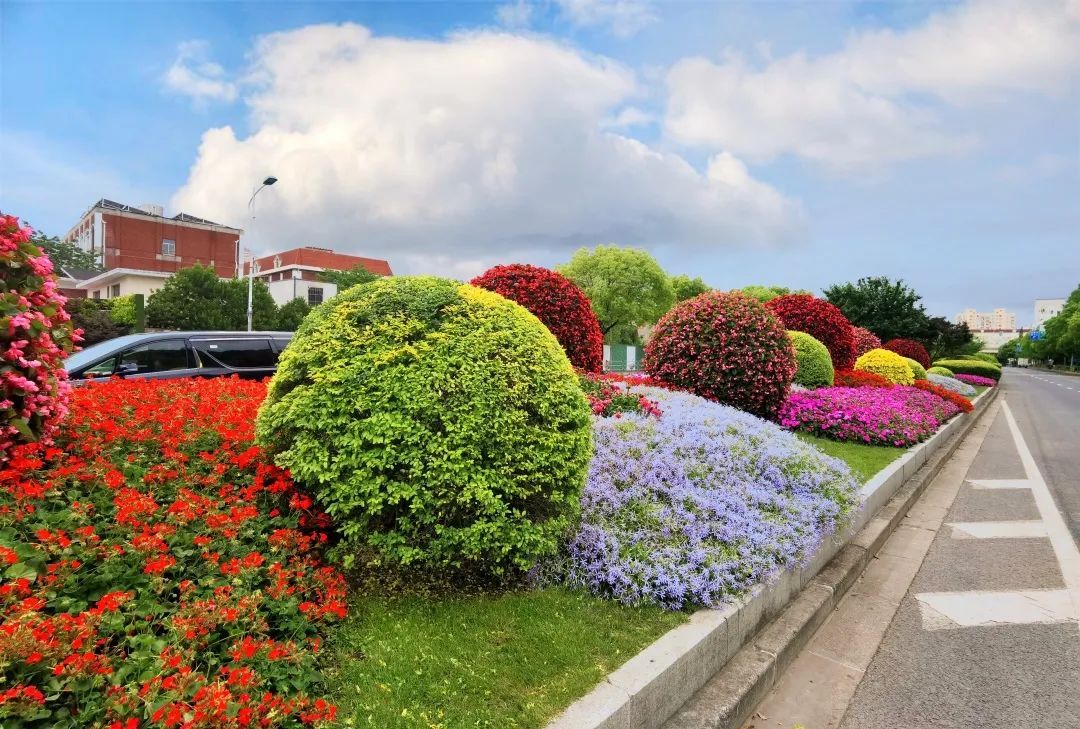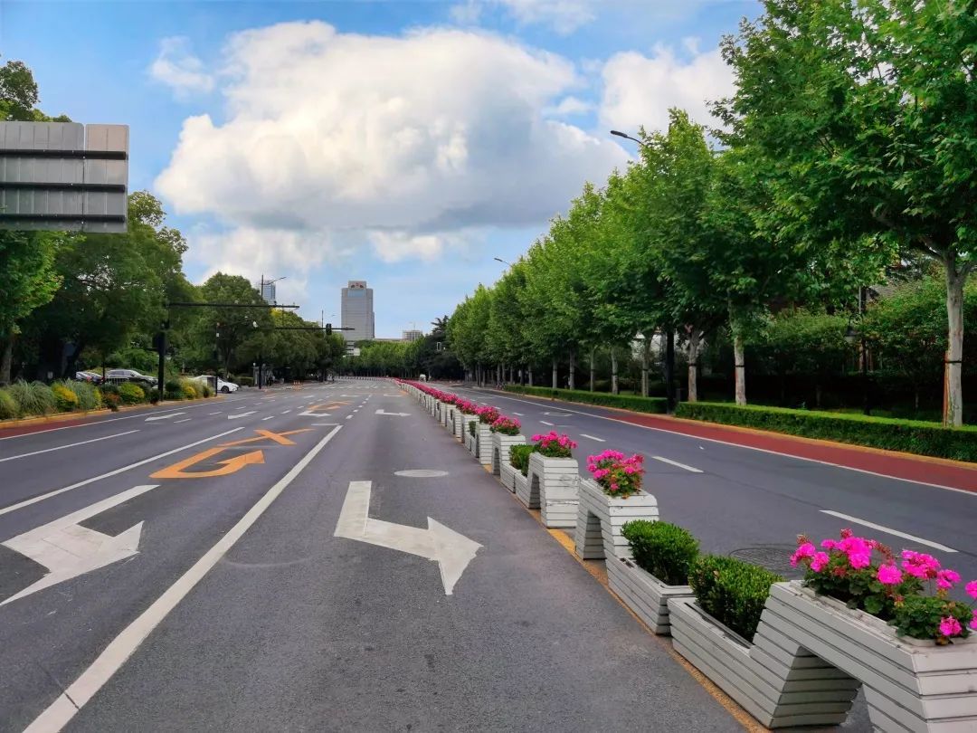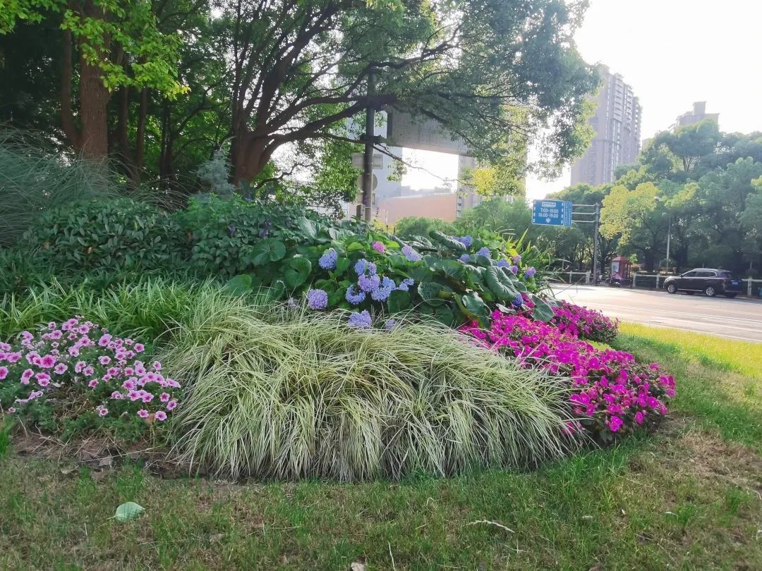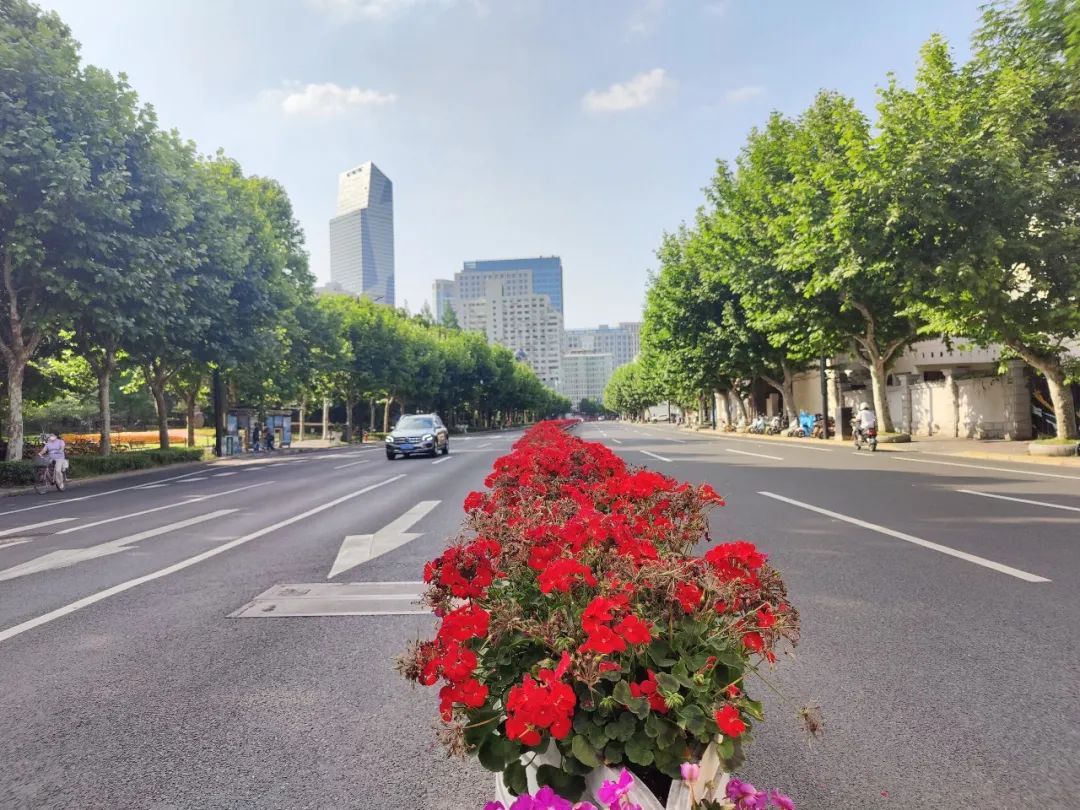 华山路不同种类的花卉,高低错落,迎风招展,无不向市民们展示着勃勃生机。