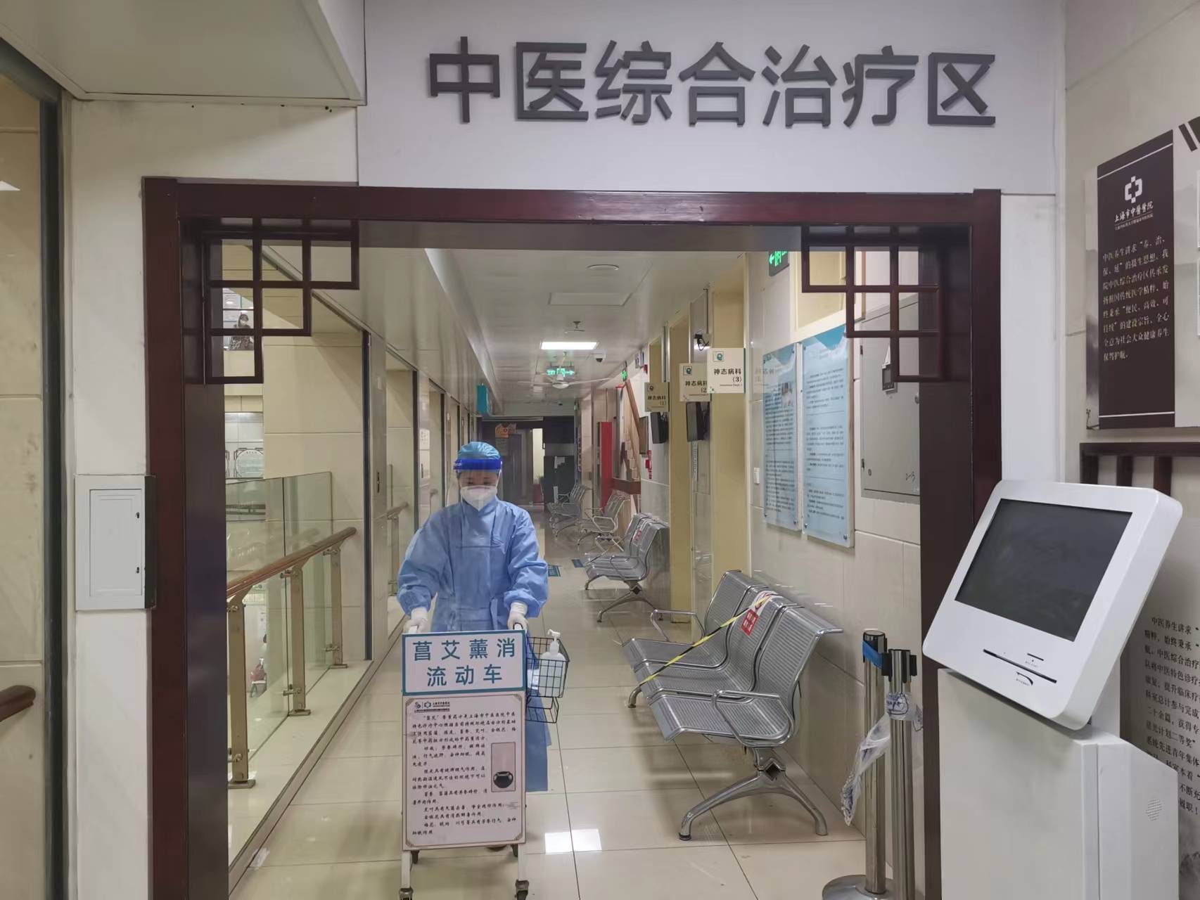 在上海市中医医院门诊大厅,患者吴女士对医院门诊大厅里升起袅袅氤氲非常感兴趣,护士介绍,这是中医特色诊疗中心的医护人员运用独有的“防疫薰消方”,正在为医院的就医空间进行空气熏消,预防疫病。随着“菖艾熏消流动车”的不断移动,袅袅氤氲的菖艾香气飘散至门诊的每个角落,而这样的熏消方式每日两次在门诊开展空气薰消,希望在这个祛病防疫的时节,为就医的患者提供更为洁净和安全的就一场所。