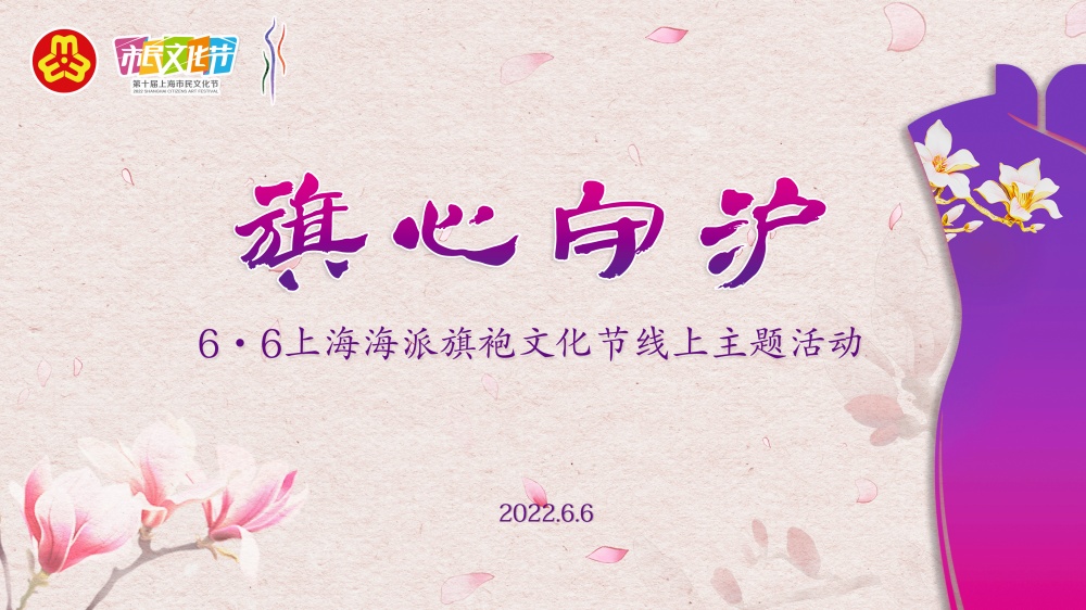 今天,由上海市妇女联合会、上海市文化和旅游局指导,上海海派旗袍文化促进会主办的2022年“旗心守沪——6·6上海海派旗袍文化节线上主题活动”将在15:00时正式开启,著名首届全国金话筒主持人方舟老师将在云端海派旗袍文化会客厅与大家见面,一起“旗心守沪、回顾精彩、展望未来”,体验与众不同的“6·6上海海派旗袍文化节”!