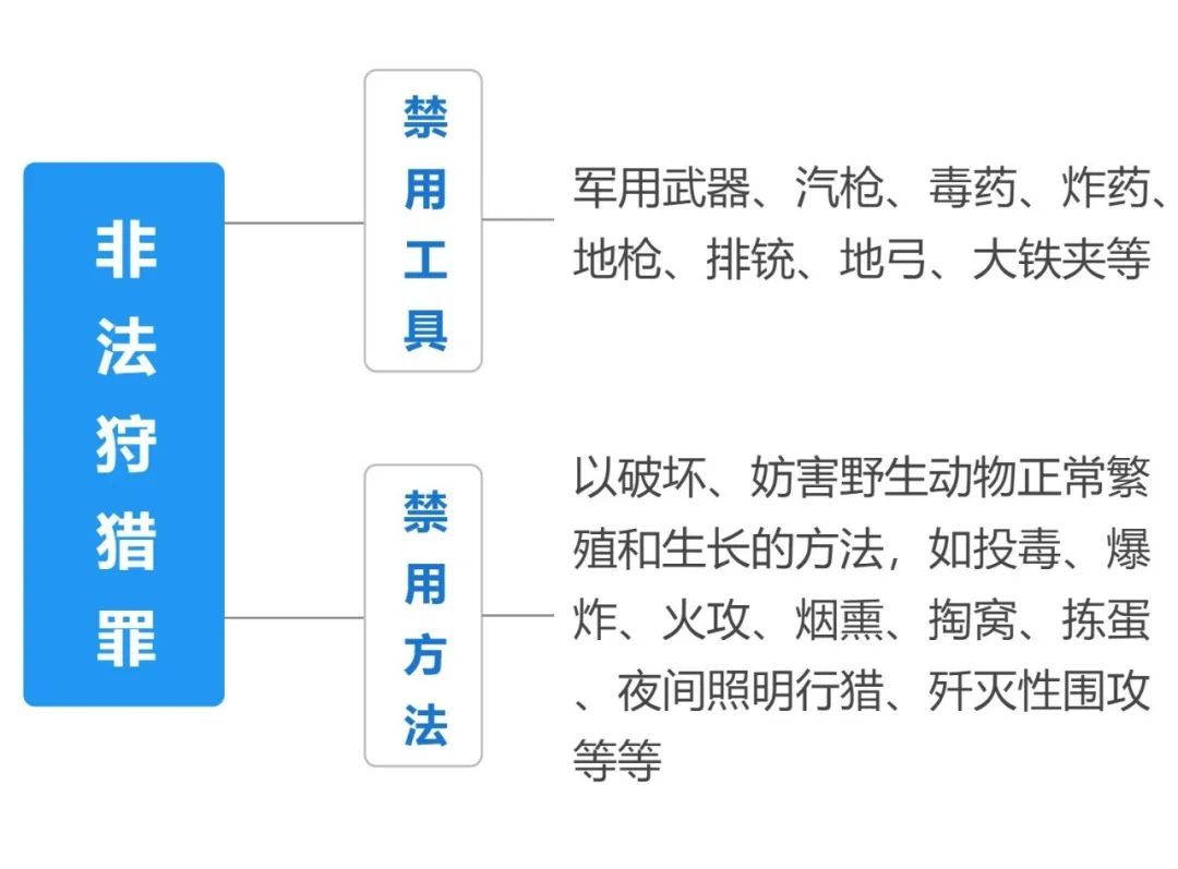 《刑法》第三百四十一条 第二款 违反狩猎法规,在禁猎区、禁猎期或者使用禁用的工具、方法进行狩猎,破坏野生动物资源,情节严重的,处三年以下有期徒刑、拘役、管制或者罚金。