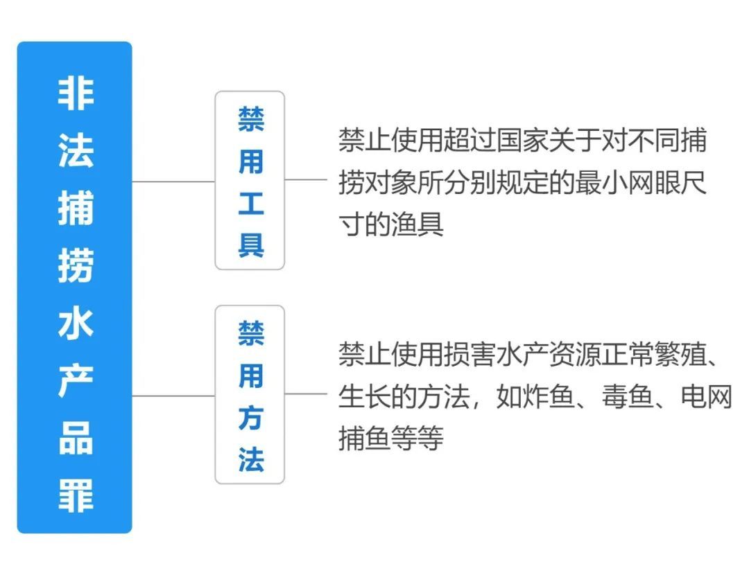 《刑法》第三百四十条 违反保护水产资源法规,在禁渔区、禁渔期或者使用禁用的工具、方法捕捞水产品,情节严重的,处三年以下有期徒刑、拘役、管制或者罚金。