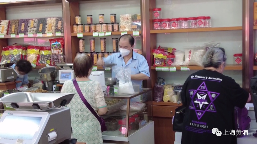 商场内,各家老字号中间已经隔断,由于控制了入场人数,商场内购物环境舒适。上海现在已经进入夏天,今天又是芒种节气,民间有祛湿解毒清肺消夏的习俗,三阳南货店南北货柜台前顾客不断,薏仁、莲心、红枣、绿豆、赤豆、百合等品种很受市民喜欢。