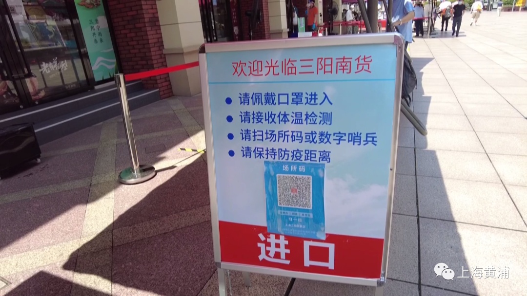 今天上午记者在南京东路555号开设的临时营业点门前看到,由于疫情防控需要,营业点开设了三个入口,分别进入三家老字号。市民需要扫场所码或者数字哨兵,并测量体温正常后才能进入。三阳南货店有限公司常务副总经理丁泓方告诉记者,“ 这里每天安排专门人员维持秩序。每进一个顾客必须要扫场所码,或者是数字哨兵。整个商场我们严格控制顾客的密度,人流不能集中。”