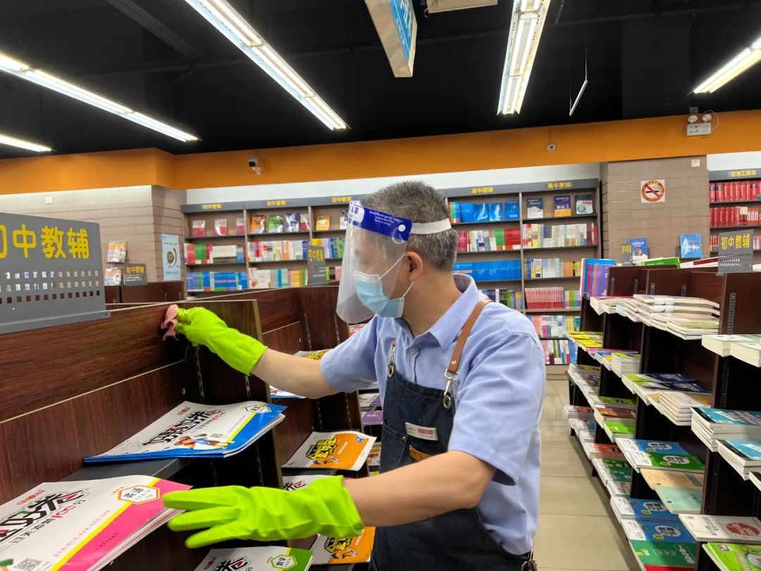 新华书店嘉定罗宾森店店长周颖介绍,每天会对门店进行三次消杀,“读者接触的公共设施部位会重点消毒,为读者提供免洗洗手液,进出书店提醒他们手部消毒。”
