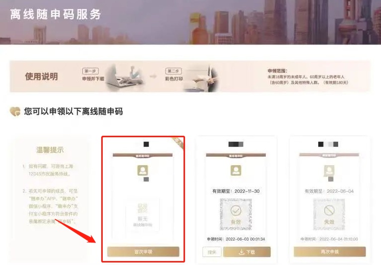 若您从未申领过离线“随申码”