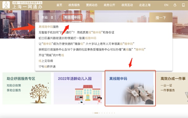 方法二:点击搜索框,输入关键词“离线随申码”即可进入申领页面。