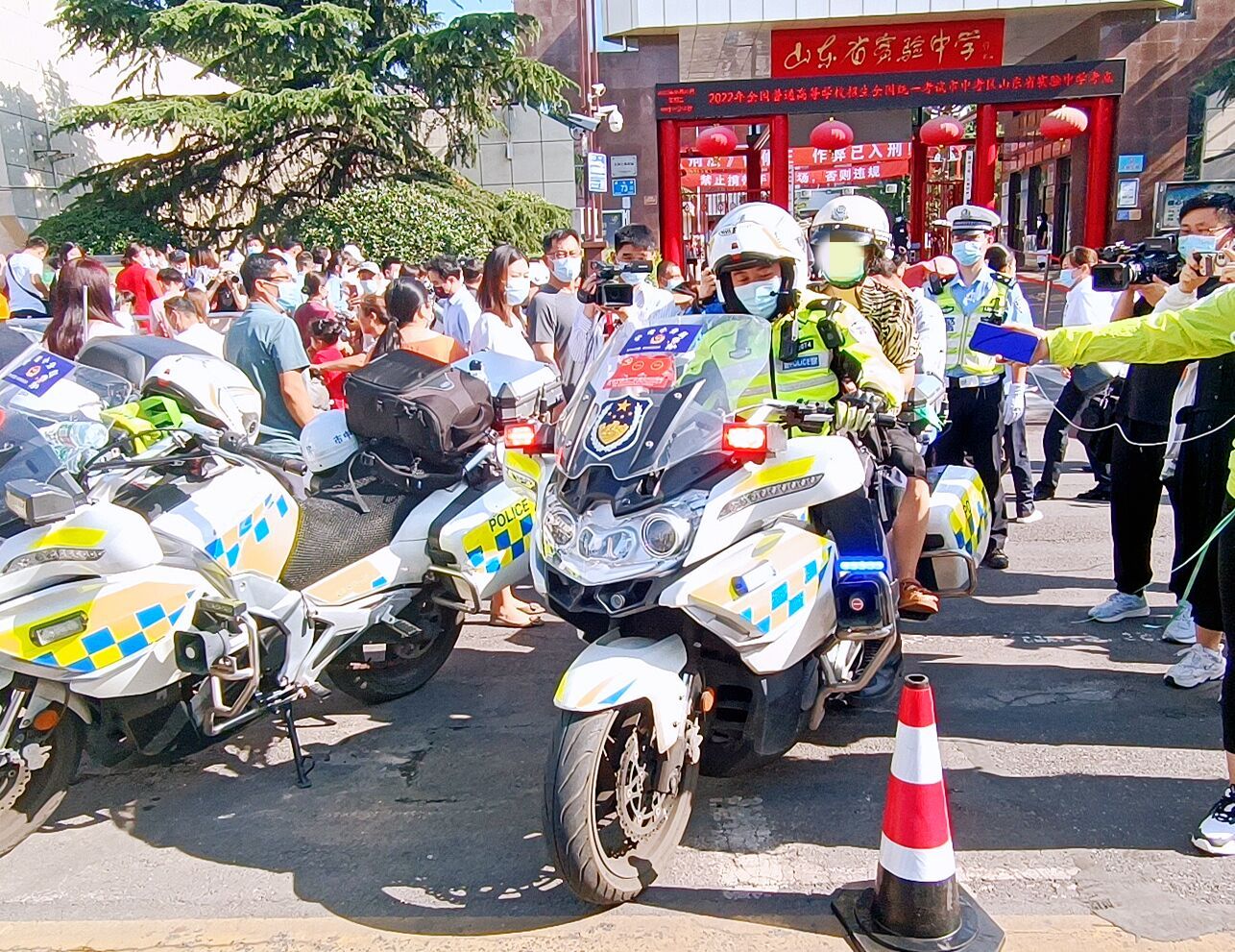济南市公安局在各考点成立高考护考小分队,为莘莘学子保驾护航。(大众日报客户端记者 卢鹏 通讯员 潘永强 张亦凡 解旺 王旭 报道)