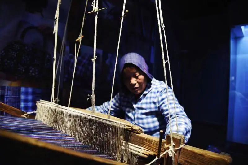 数位非遗传承人纺织技艺的活化传承,以及滚地笼、棉田、卧室、布荘、裁缝店等实景,再现了“一朵棉花做到头”的全过程,把游客带入600年来男耕女织的时空随道。
