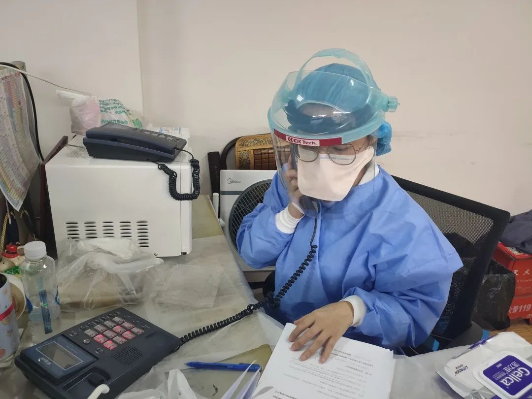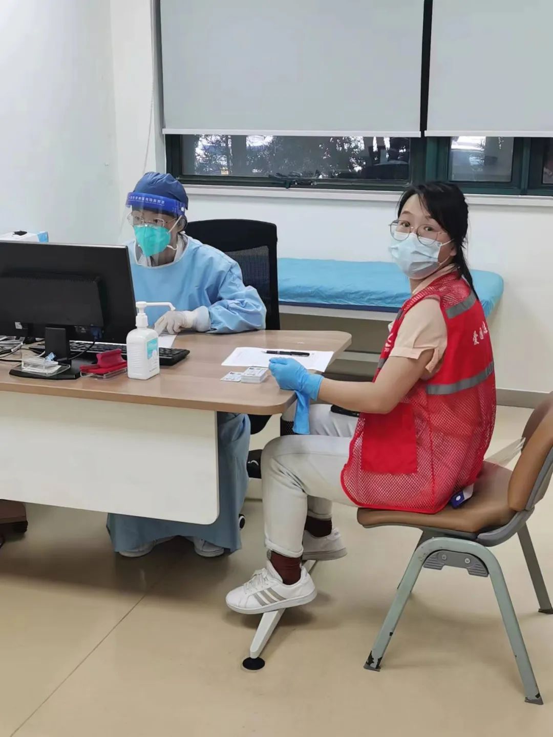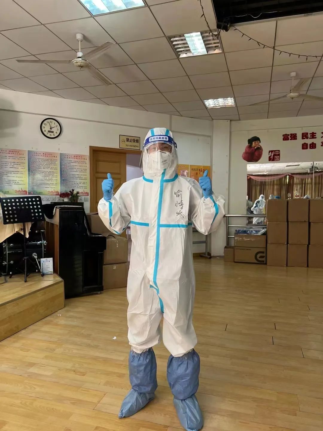 3月底,全市疫情异常严峻,全市核酸检测人员十分紧缺。她在看到医院紧急发布的志愿者招募通知后,毫不犹豫地报名。4月1日早6点,作为上海市同济医院第一批核酸检测志愿者乘上了定向支援普陀区各社区的大巴。一天的核酸检测工作远比她想象中的艰辛:一整天除了中午短暂的30分钟午饭时间外都无法饮水,防护服下的口渴感和闷热感让人难以忍受,再加上长时间站立和手持偌大的PDA仪器导致腰部和手部酸痛不断加重。最终,她和搭档章青老师一共完成了1328位居民的核酸检测任务。登上晚7点返回医院的大巴后,疲惫的她直接倚着车窗睡至医院。下车后,所有志愿者均收到了医院准备的爱心晚餐,身边的老师们紧锣密鼓地安排明天的任务。回想着这一天发生的一切:“我们一呼百应地并肩战斗着,我们也比任何人都相信黎明即将到来。”