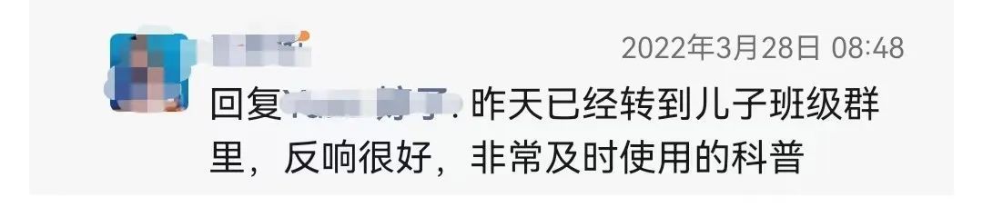 当她看到朋友圈中家长朋友的留言:“昨天已转发儿子班级群里,反响很好,非常及时的科普。” 她由衷地感受到作为一名医学科普人的价值及其带来的幸福感。