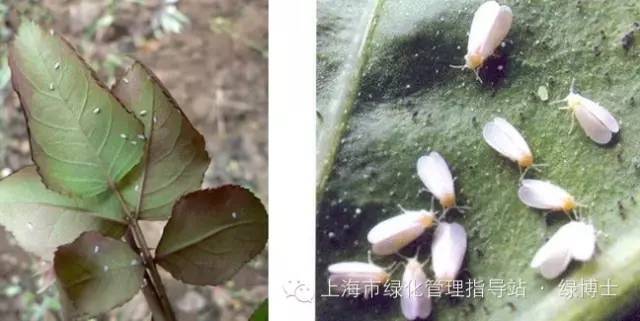 温室白粉虱,成虫翅膀白色,是家庭养花常见的粉虱种类。其若虫体型微小,附在叶背刺吸危害,不易被察觉。月季、一品红等花卉比较容易发生。