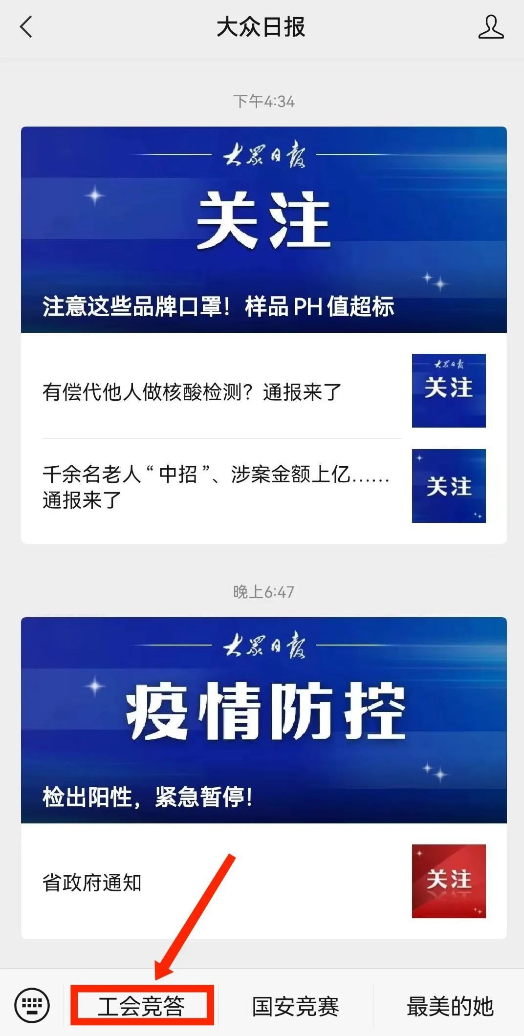 1.关注《大众日报》微信公众号,点击“工会竞答”,填写个人信息,选择所在市、县(市、区)或大企业后,即可参与竞答。
