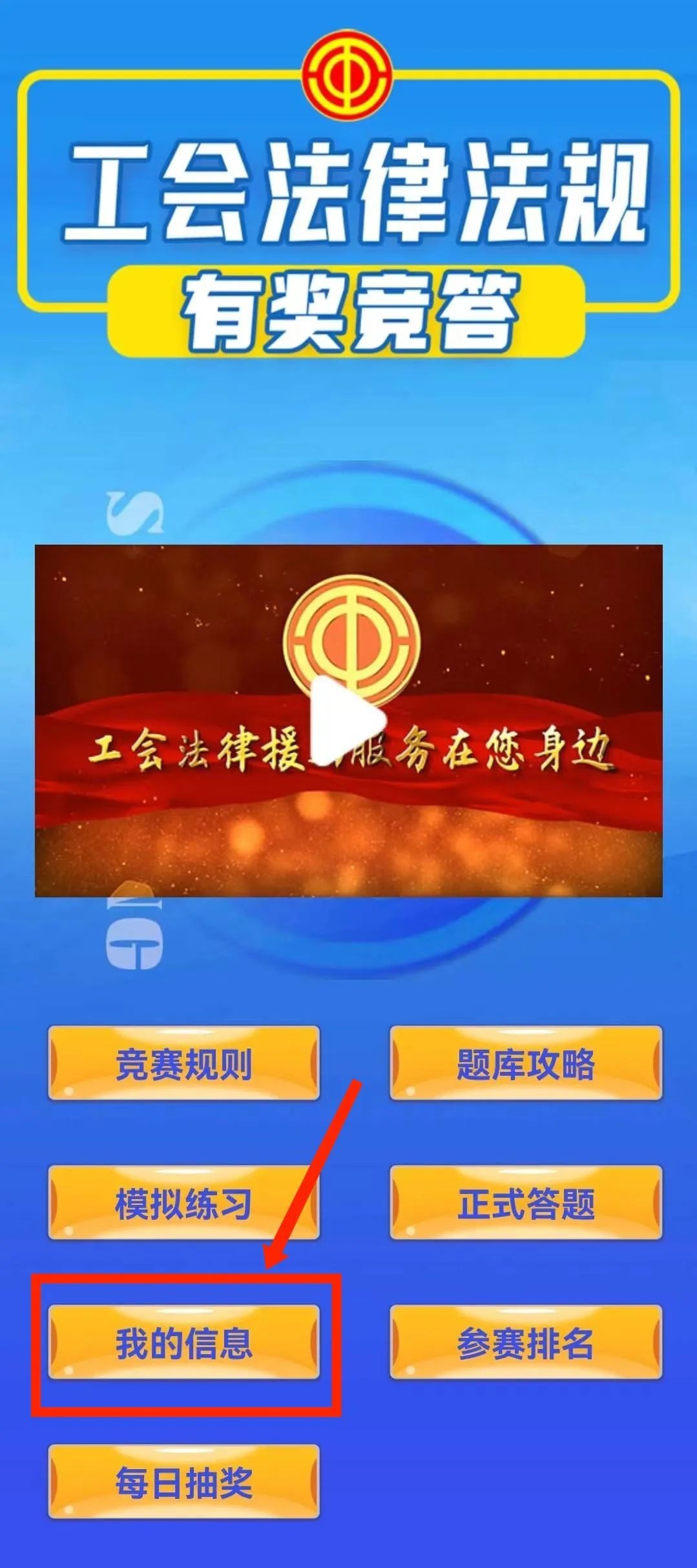 竞答活动将提供《工会法》《条例》题库供大家学习,同时提供全省工会法律服务宣传视频供大家观看。