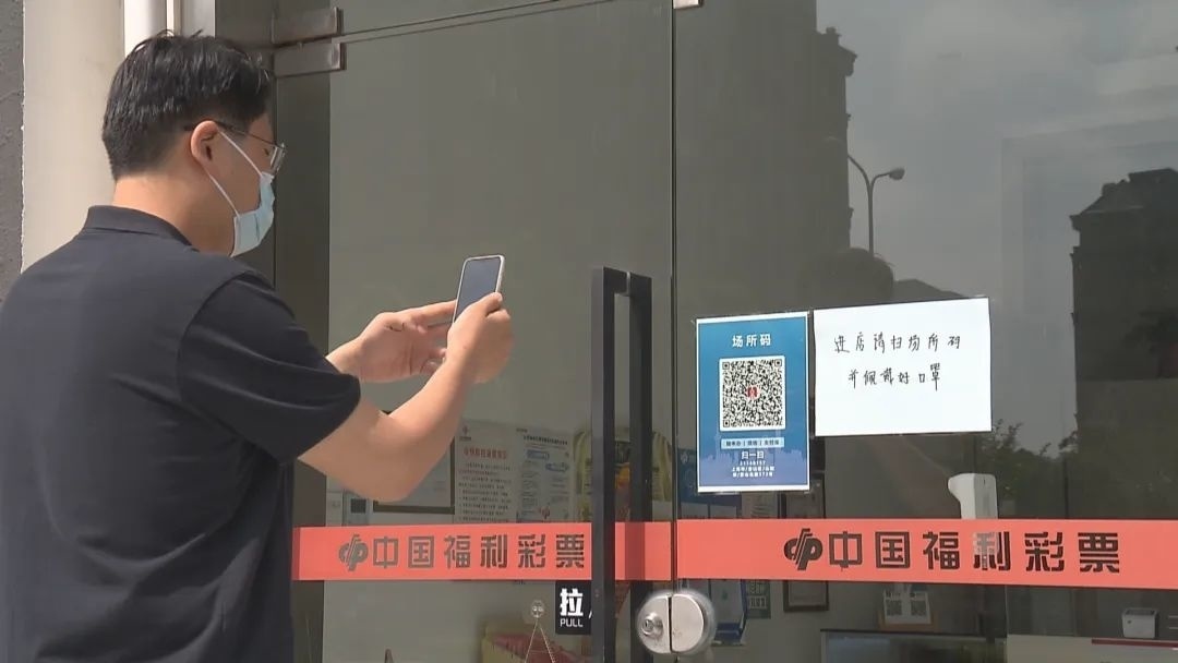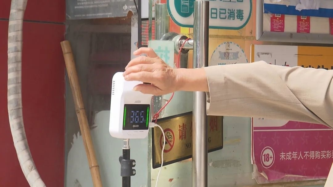 上午9点,记者在蒙山路1325号福彩销售站点看到,门前摆放着测温计、门上张贴着场所码、门口的广播循环播放着提示语,市民们测温、扫码验证无误后方可进入购票。