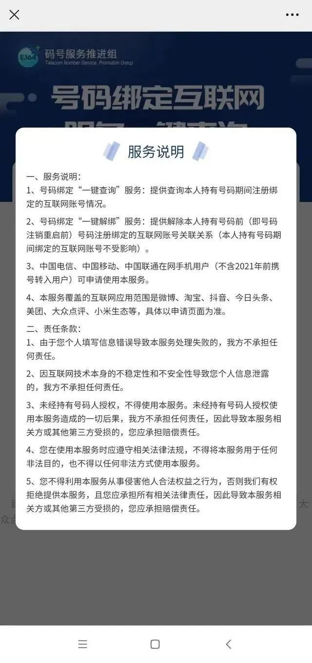 声明还特别指出,中国电信、中国移动、中国联通在网手机用户(不含2021年前携号转入用户)可申请使用本服务。本服务覆盖的互联应用范围是微博、淘宝、抖音、今日头条、美团、大众点评、小米生态等,具体以申请页面为准。