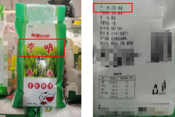 情形一:市场上销售的大米产品,在包装上突出使用“崇明”字样(如崇明软香米、崇明香米等),但产地标识为崇明区外地址的,涉嫌违反《中华人民共和国食品安全法》第七十一条第一款规定。
