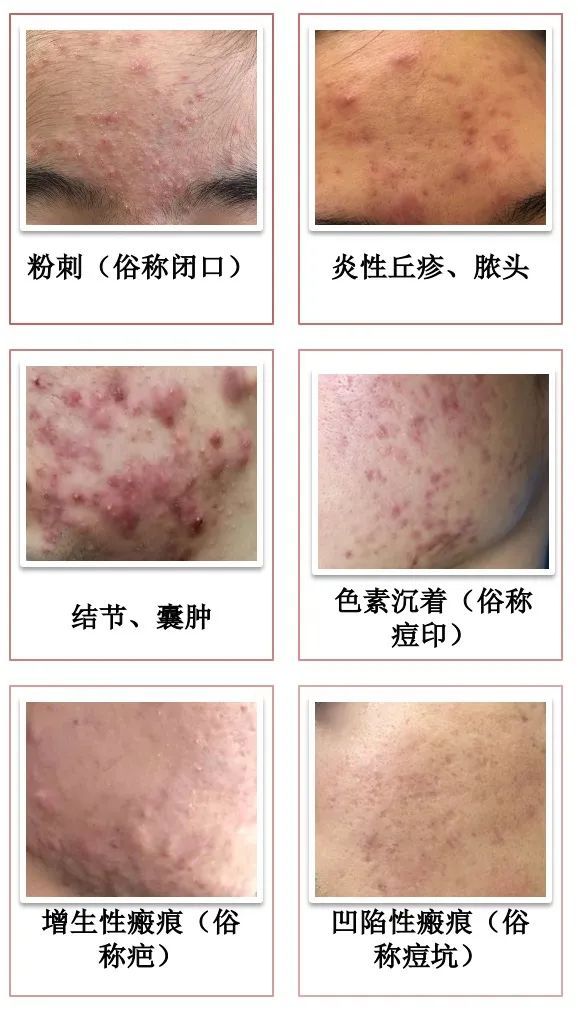 同一张脸上会有很多不同类型的痤疮,根据皮损的类型选择外用药膏。