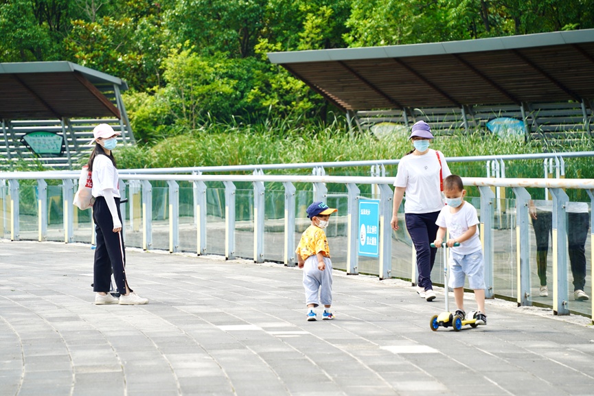 错过了春日的百花齐放,迎来夏日的绿树蝉鸣。赵巷公园和体育公园于近日有序开放,在严格落实相关防疫措施的基础上,吸引周边居民溜娃乘凉、放松心情。