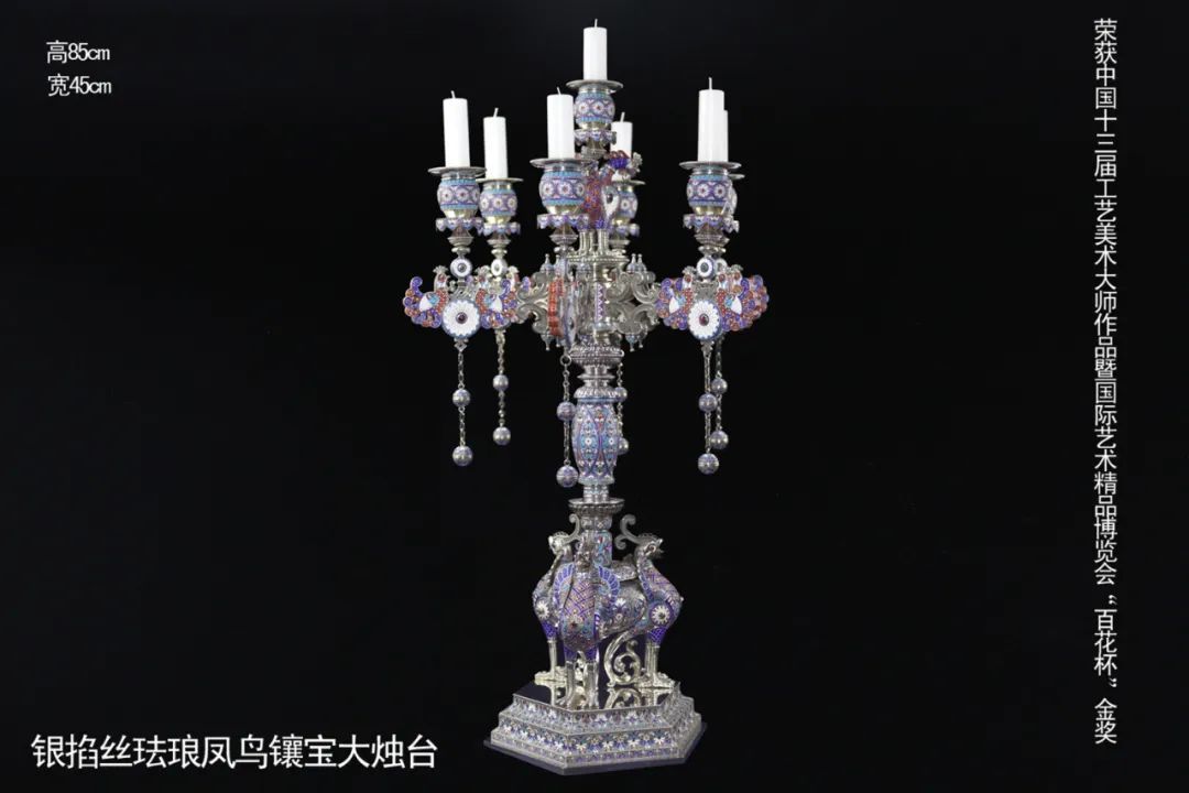 余士渭所制大型珐琅器《银掐丝珐琅凤鸟镶宝大烛台》共有6对,现分散在俄罗斯、美国、以色列等世界各地,特朗普还是美国地产大亨时期就已收藏了一对。