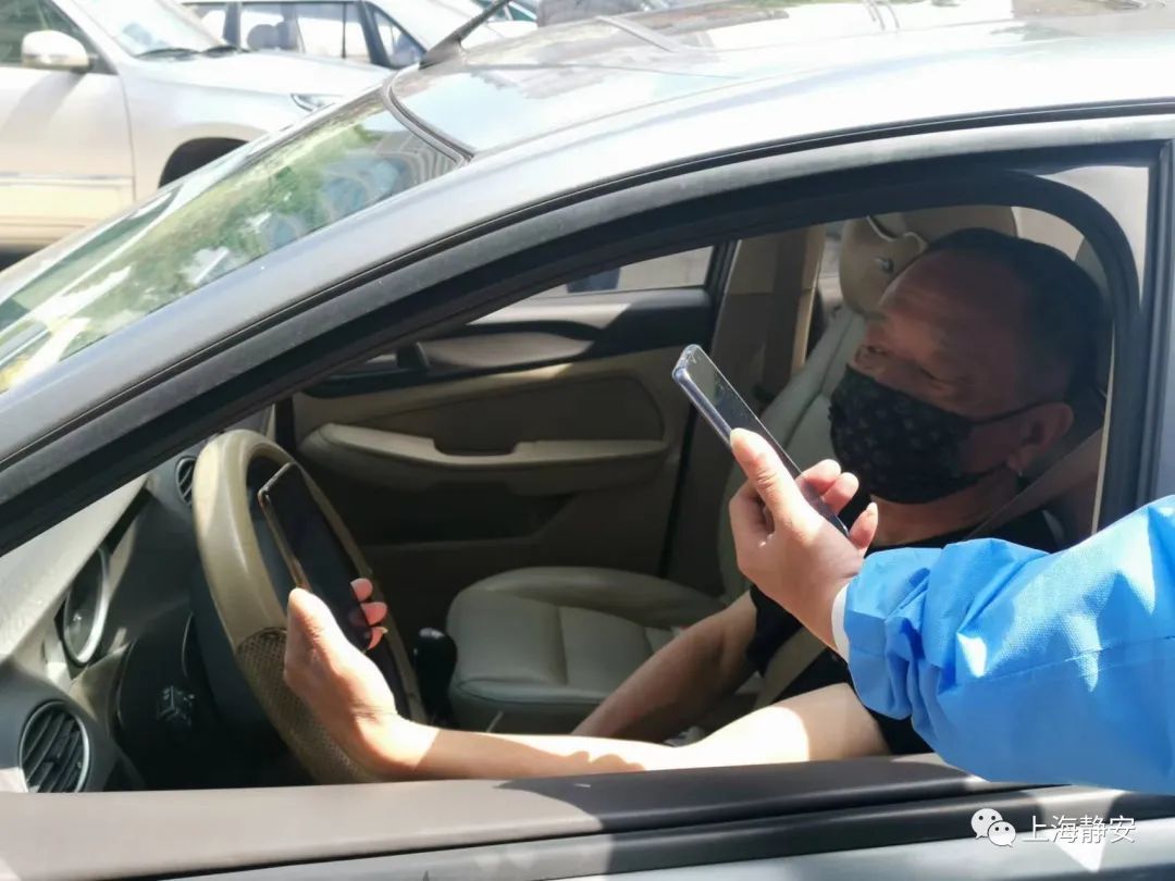 在检测站的入口处,两名身穿防护服的工作人员,仔细检查每一名车主“场所码”的有效时间,核酸检测超过72小时的车主不准入场。