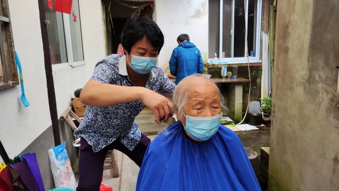 从2001年开始,潘师傅就定期去枫泾敬老院为老人们免费理发。2005年时,潘东成和妻子孙彩媚一起加入了和平居委会志愿服务队,夫妻有时还带着徒弟上门为老人理发,用精湛的手艺为老人打理形象。潘东成的服务“地图”不断拓展,从古镇核心区域,延伸到偏远村居。“春夏秋季节1个月1次,冬天1个多月1次,这样的上门周期基本满足老人的理发需求,他们可以安心在家,不需要找理发店。”潘师傅说。