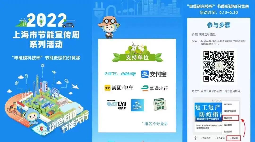 携手上海市节能协会,面向市民开展节能低碳知识、生活节能低碳窍门等方面的知识竞赛活动。奖励多多,速来一试。