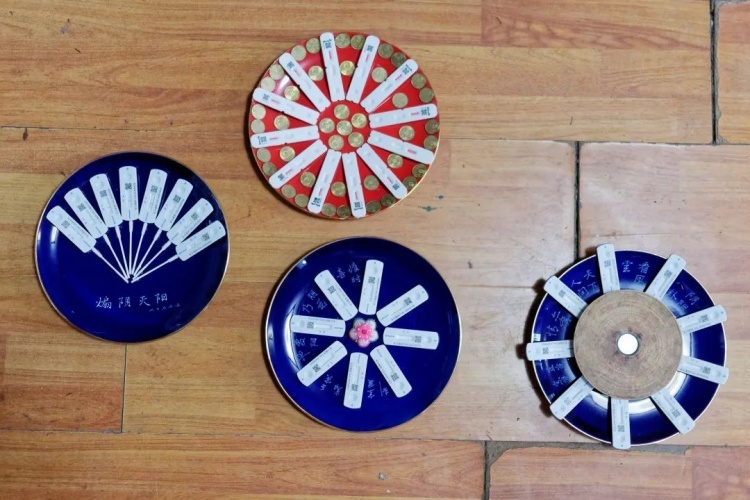 “煽阴灭阳”“罗盘八卦看阴阳”“凌时喜阴,花乃爱阳”……在张宗贤的这些作品中,抗原板、棉签、塑料试剂盒等,都成为可与瓷刻结合的创作材料。更为有趣的是,他还进行更为广泛的艺术跨界,将余下的保供食品融入创作中。在他家老宅的一面墙上,有一幅“花团锦簇”的装饰画,“花芯”是菜蔬,“花瓣”是面条,他说:“青菜萝卜,面条如花。”