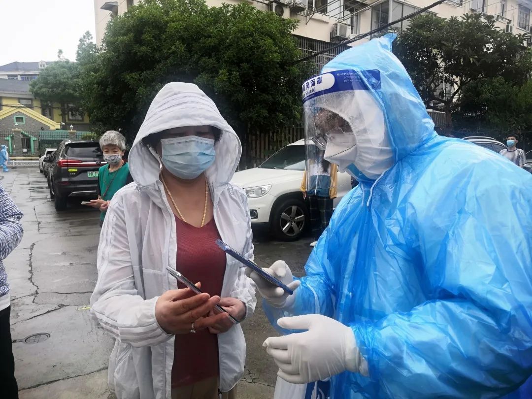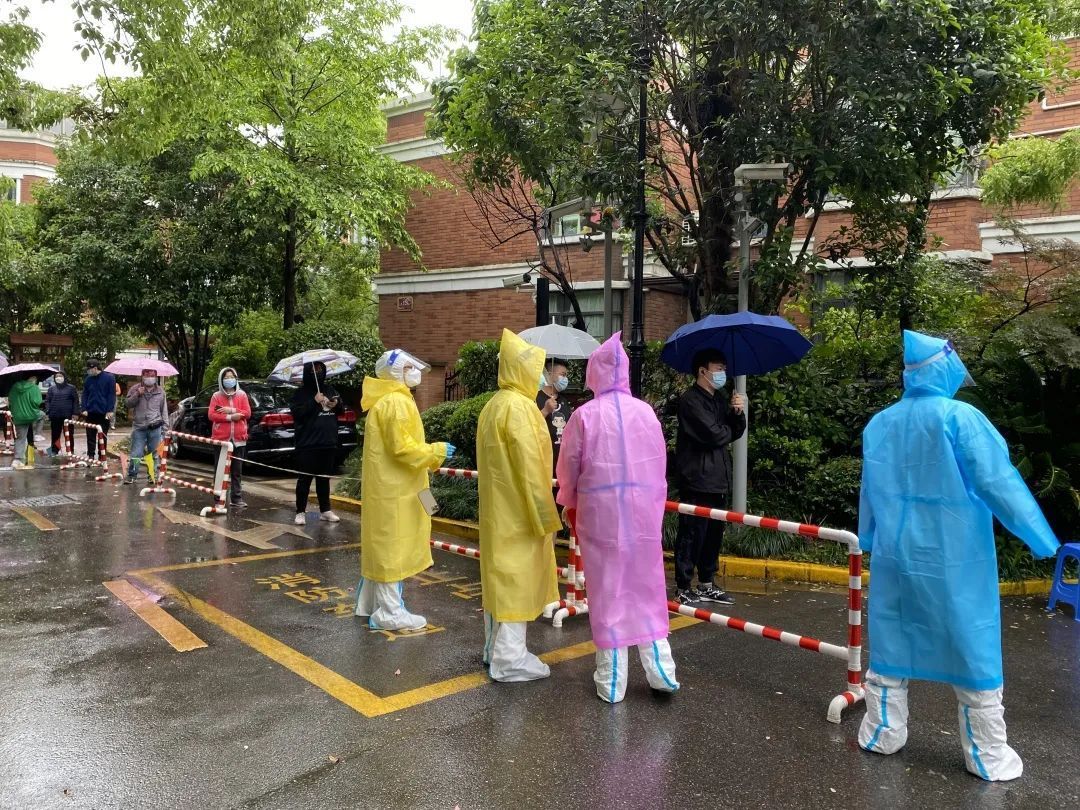 顾村镇旭辉依云湾小区今天共完成采样3192人,雨水没有阻挡居民们的脚步。