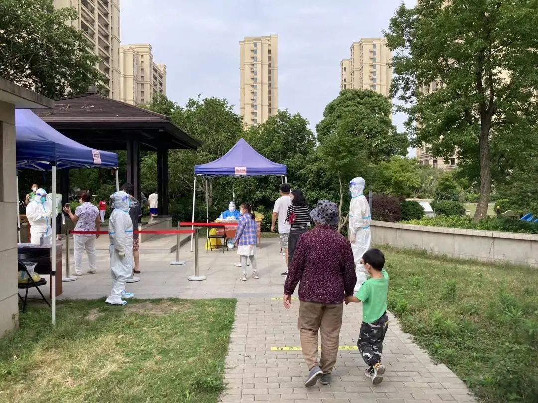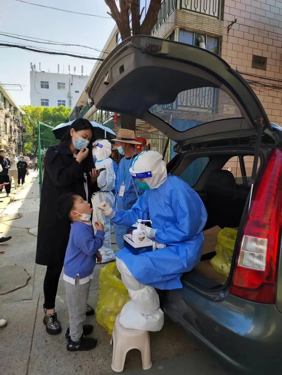 早上六点半起,宝山各小区陆续开展核酸采样,居民分批、分时段有序参加,做到应检尽检、不落一户、不漏一人。