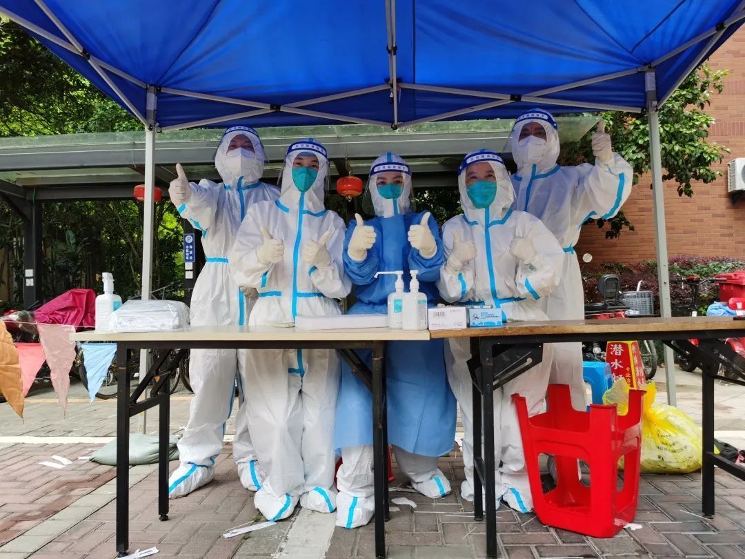 由于近期疫情出现反复,现场采样人员和志愿者也是格外小心细致,不停提醒大家带好口罩、保持2米距离,每次采样前都会做好消毒工作。