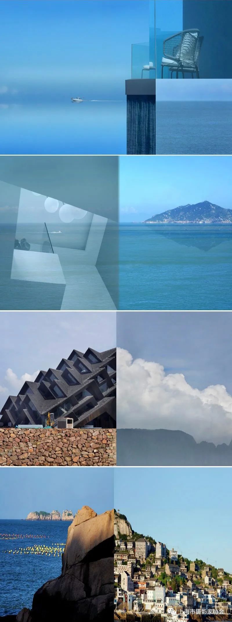 作品把东极岛上不同地点、不同海景进行拼接,提炼并重新构建相似景元素,呈现出一种全新的观念性视觉,打破固有认知,激发观者思考,同时在虚构错位中追求可见可同的无限想象可能。