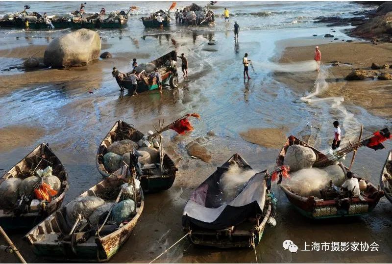 2013年夏天拍摄。广东省吴川市覃巴镇调德漁民早出晚归,下午整理鱼网、把鱼船上岸完成一天工作。