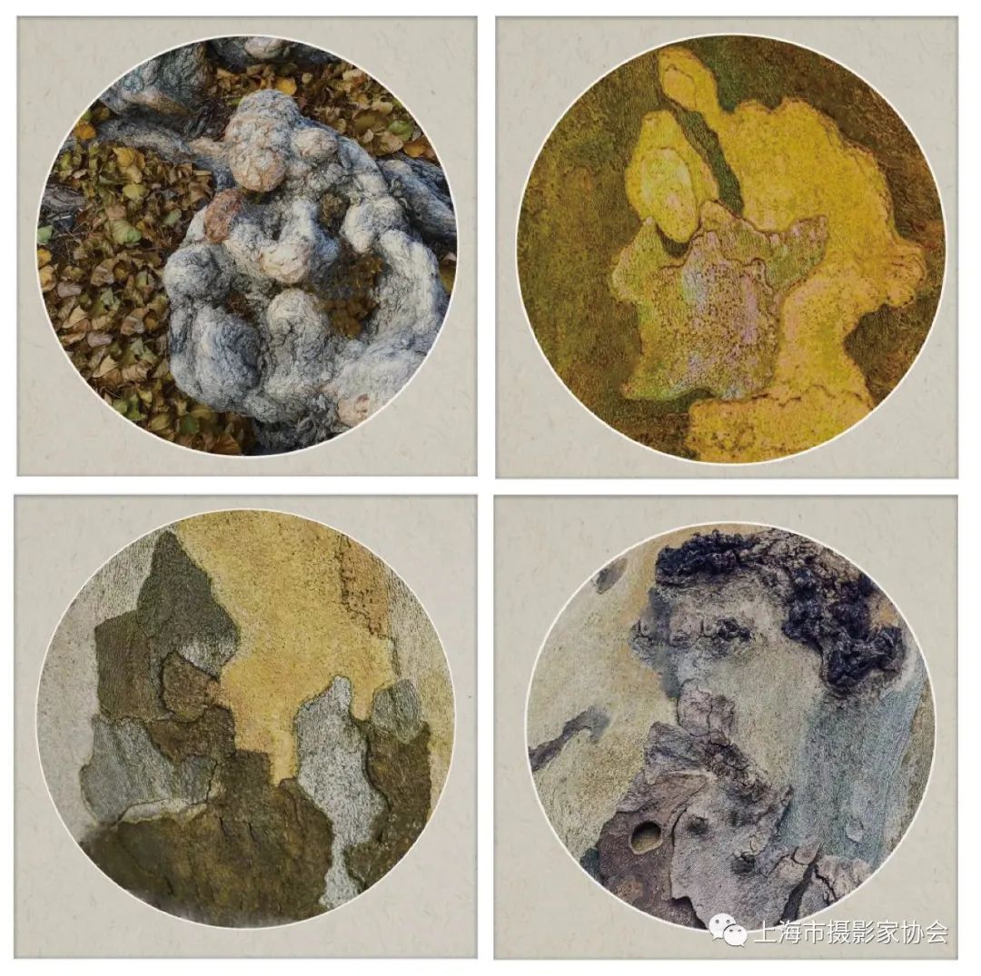 2021年我以南京树木作为摄影创作的主要对象,特别是拍摄树皮所彰显出来的艺术图案。其中,人物形象更是别具一格,精彩纷呈。有的似夫妻对话,有的如少女读书,有的像牧童喂羊,有的仿八戒照镜,等等,栩栩如生,甚是有趣。