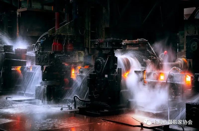 2019年7月,拍摄于安徽省淮南市宏泰钢铁有限公司。轧钢生产线喷水降温,慢门下的水雾映衬着火红的钢锭如梦如幻。