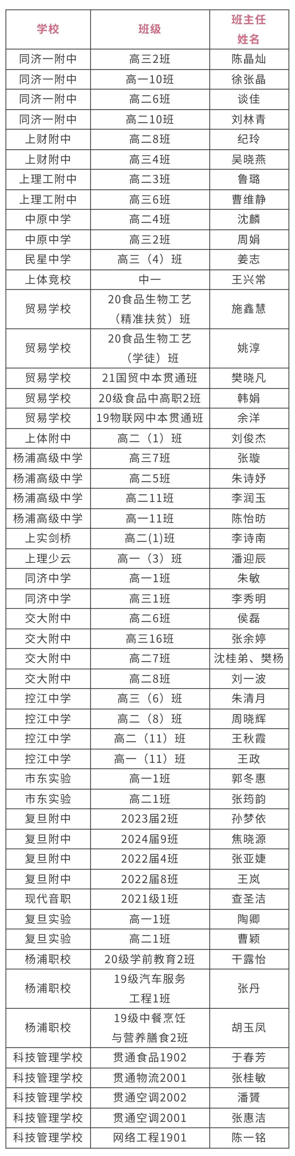 杨浦区中等学校先进班级名单(51个)