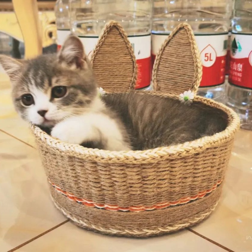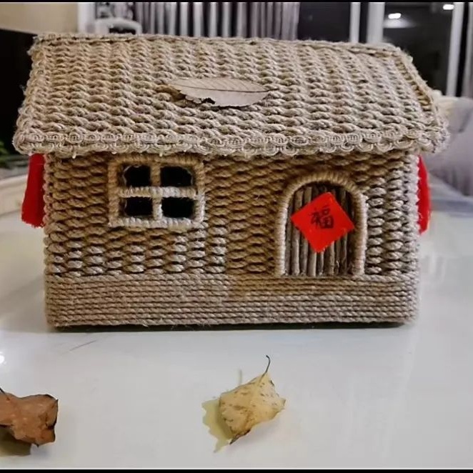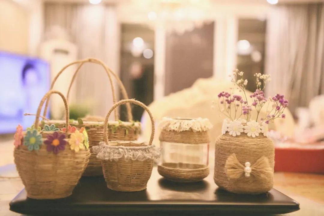 饰品盒、储物篮、手拎包、纸巾盒、花瓶、猫窝……通过废物利用,管晓晨将生活中随处可见的外卖餐盒、鞋盒、纸杯变成了小清新的麻编作品,受到了很多邻居、朋友以及手工爱好者的喜爱。