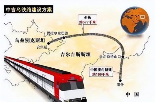 中吉乌铁路是中欧班列南部通道的重要组成部分。中吉乌三国早在1997年便就修建一条联通三国的铁路项目签署备忘录。据悉,中吉乌铁路建成后,自东亚到中东和南欧的铁路运距将较目前缩短约900公里,用时节省7天至8天。